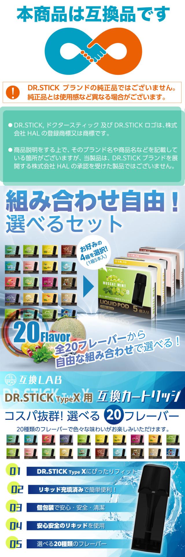 互換LAB ドクタースティック タイプX用 互換カートリッジ DR.STICK type X用 ドクタースティック用 リキッド 本体 新型 使い捨て 電子タバコ ベイプ VAPE リキッド フレーバー ポッド POD 互換ラボ メンソール ミント 充填済み 個包装 爆煙