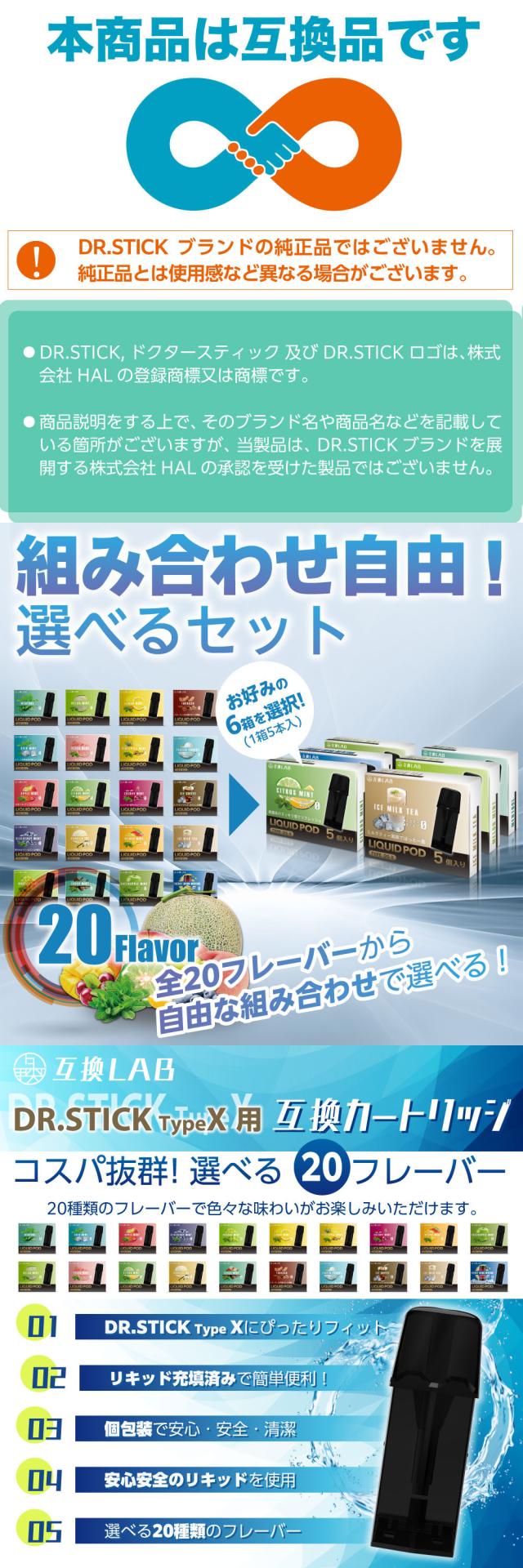 互換LAB ドクタースティック タイプX用 互換カートリッジ DR.STICK type X用 ドクタースティック用 リキッド 本体 新型 使い捨て 電子タバコ ベイプ VAPE リキッド フレーバー ポッド POD 互換ラボ メンソール ミント 充填済み 個包装 爆煙