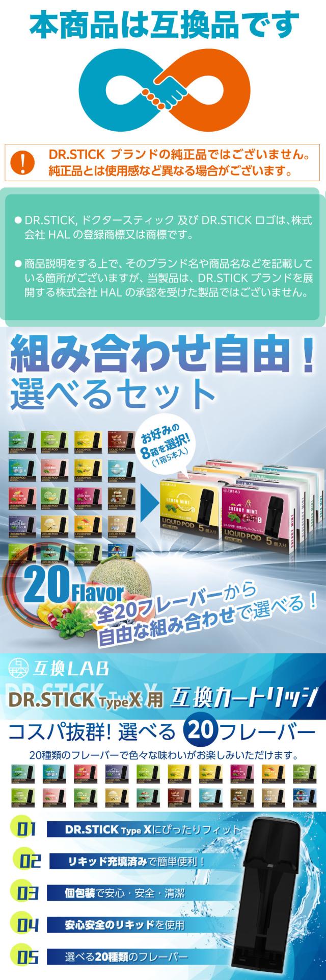互換LAB ドクタースティック タイプX用 互換カートリッジ DR.STICK type X用 ドクタースティック用 リキッド 本体 新型 使い捨て 電子タバコ ベイプ VAPE リキッド フレーバー ポッド POD 互換ラボ メンソール ミント 充填済み 個包装 爆煙