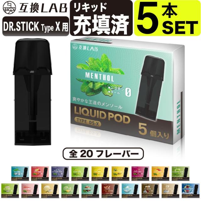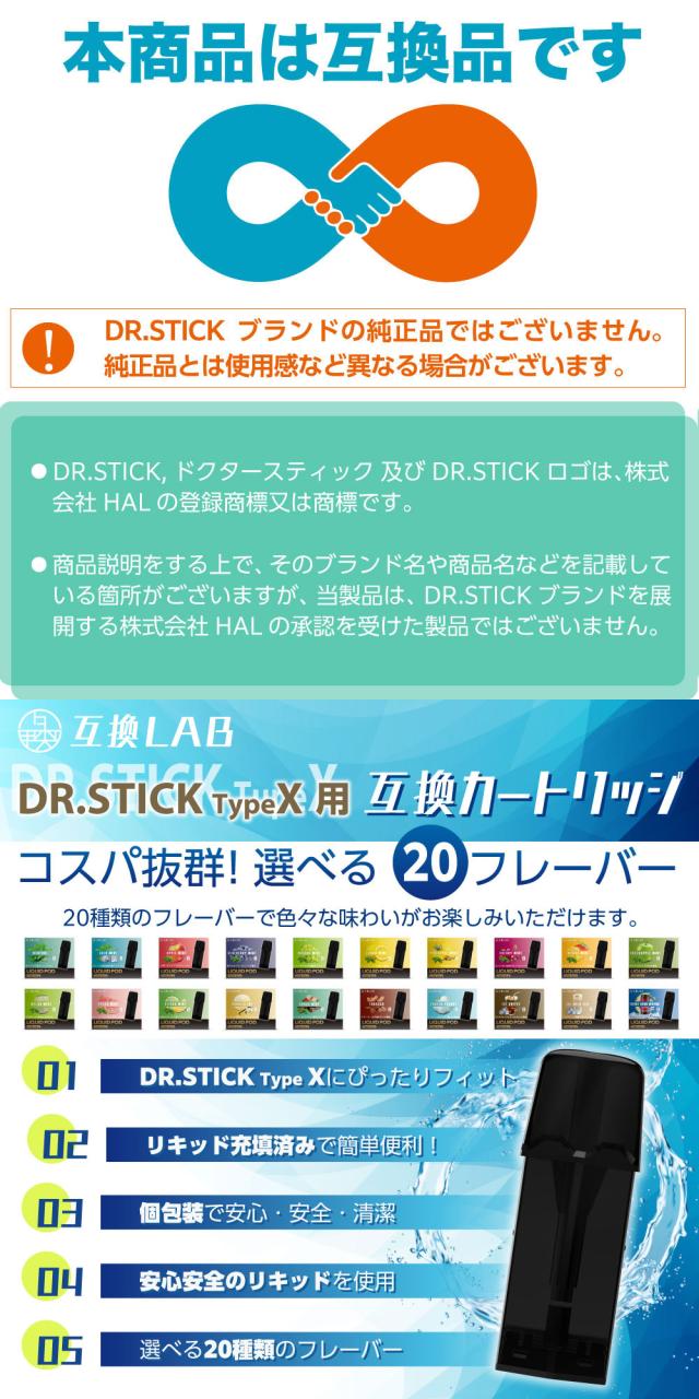 互換LAB ドクタースティック タイプX用 互換カートリッジ DR.STICK type X用 ドクタースティック用 リキッド 本体 新型 使い捨て 電子タバコ ベイプ VAPE リキッド フレーバー ポッド POD 互換ラボ メンソール ミント 充填済み 個包装 爆煙
