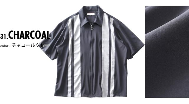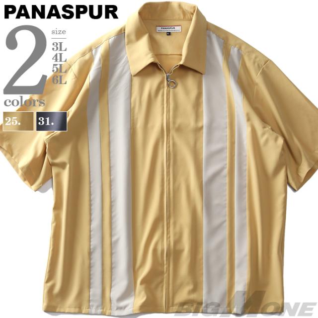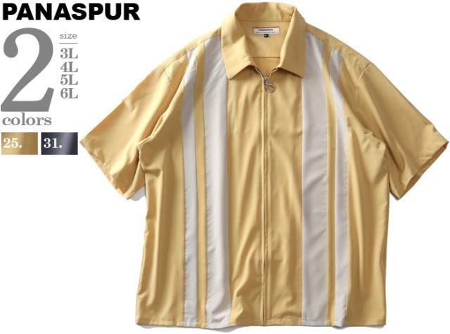 大きいサイズ メンズ PANASPUR パナシュプール 半袖 ポリエステル 切替 ZIP シャツ 3343-556z