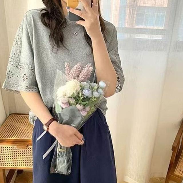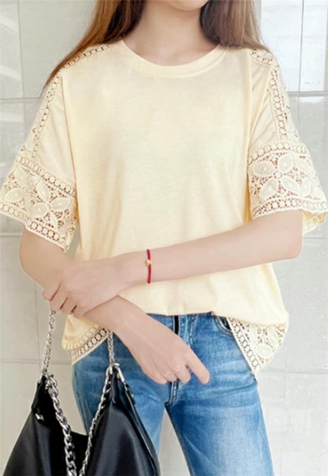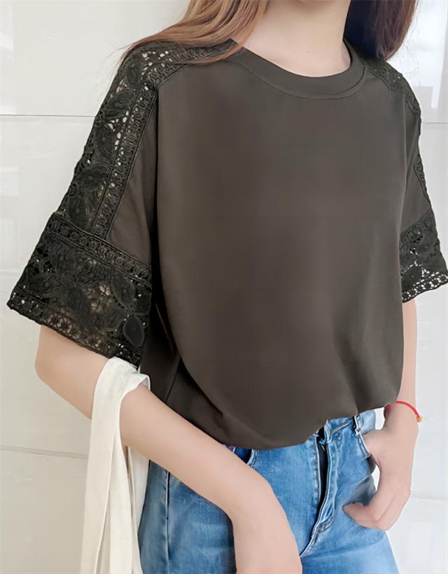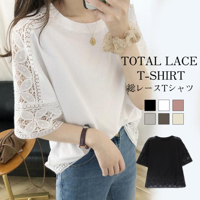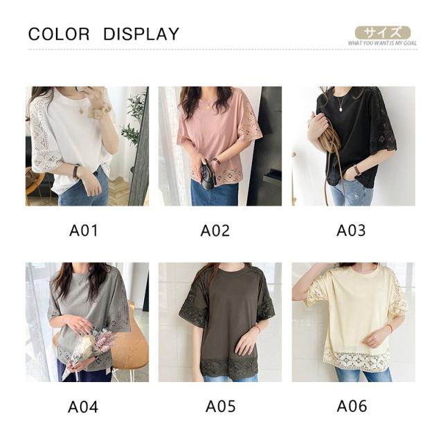 ブラウス シャツ レディース 半袖 レース トップス 無地 きれいめ シースルー ハイネック 花柄 オフィス 通勤 普段着 日常