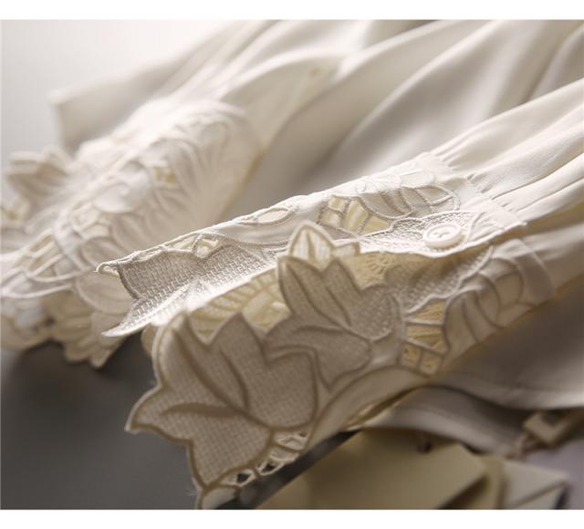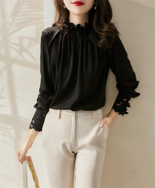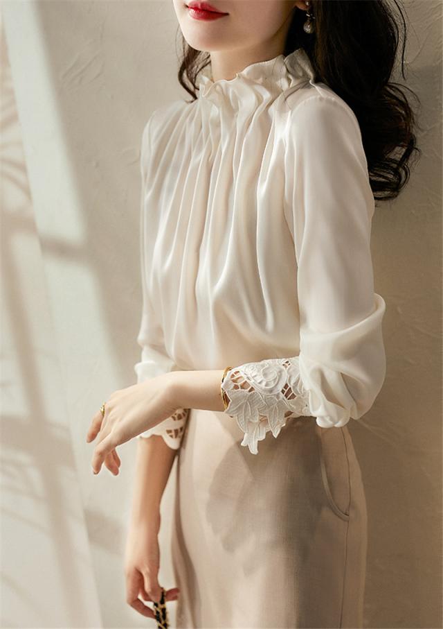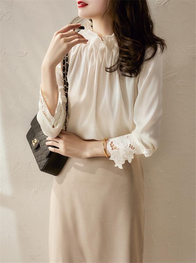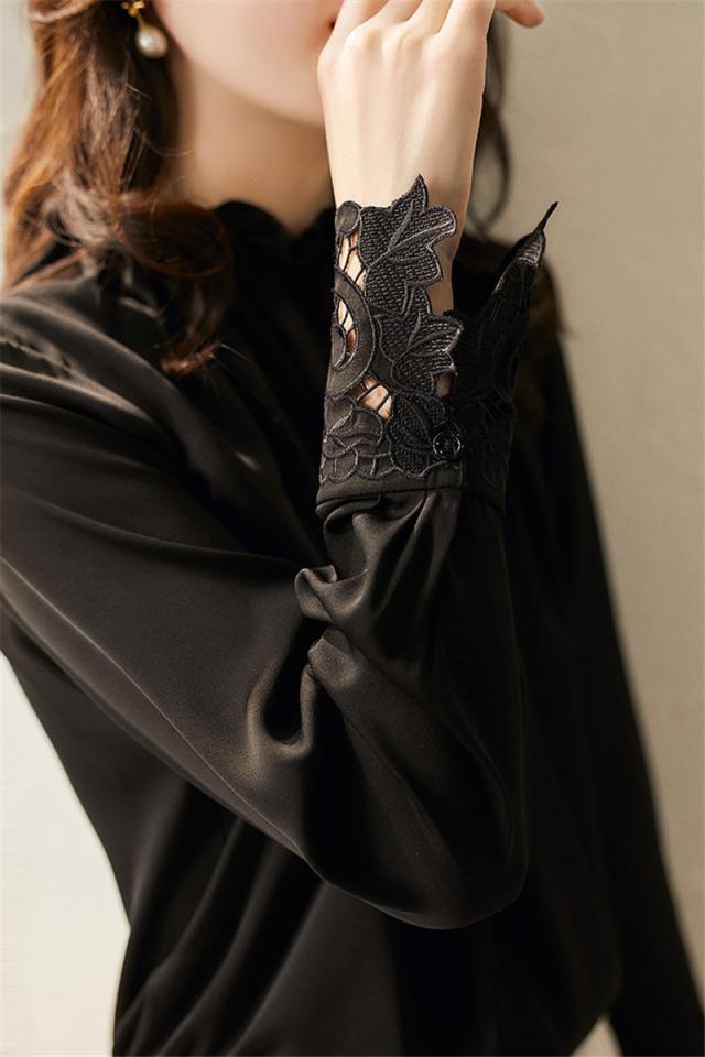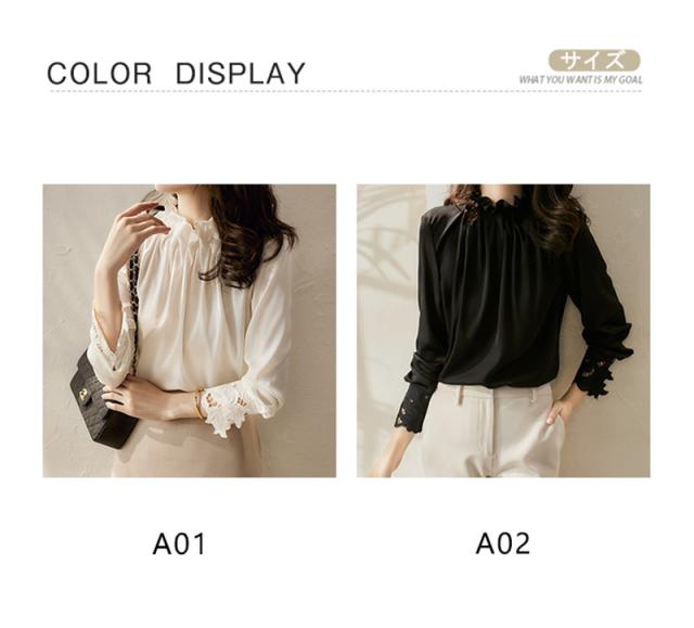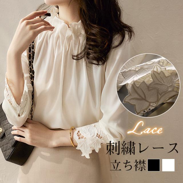 ブラウス シャツ レディース 長袖 レース トップス 総レース シースルー ハイネック 花柄 袖コンシャス 通勤 普段着 日常 細