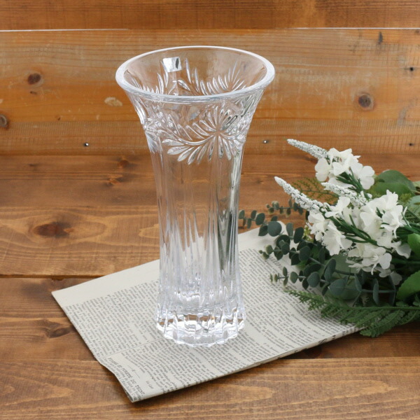 花瓶 25cm カットグラス 箱入り アウトレットフラワーベース 花器 ガラス製 おしゃれ かわいい ボトル ガラスボトル キッチン雑貨