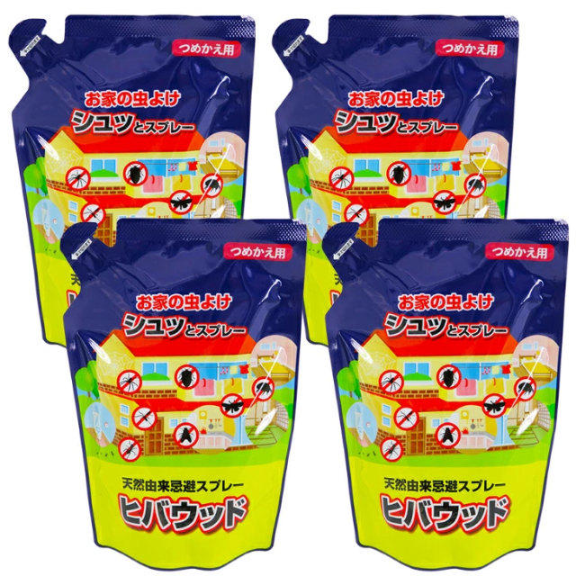 ヒバウッドつめかえタイプ4袋 お家の虫よけスプレー 住まいの虫除けスプレー 天然由来忌避スプレー 正規代理店 ムカデ ヒノキオイル 害虫忌避剤 天然由来 ヒバウッド詰め替え用 日本製