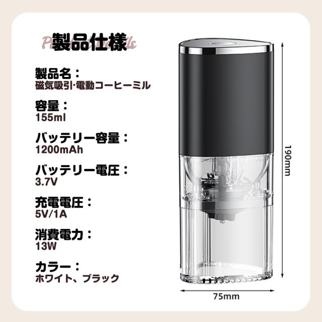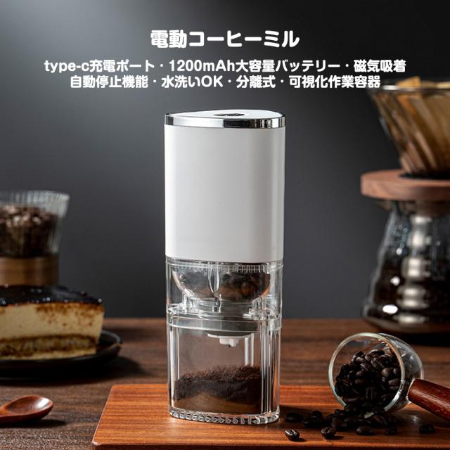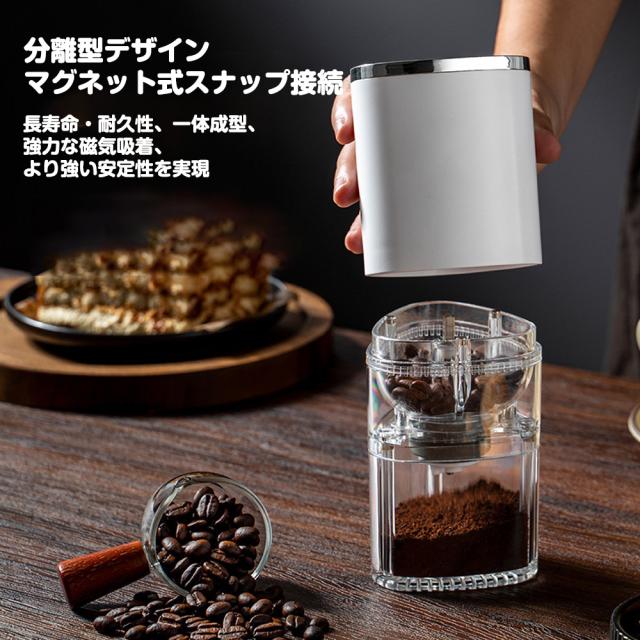 電動コーヒー コーヒーミル 電動 ミル コーヒー豆 5種挽き目 ポータブル コードレス 分離式 磁気吸着 水洗い可能 充電式 自動停止 アウトドア お手入れ簡単 人気商品