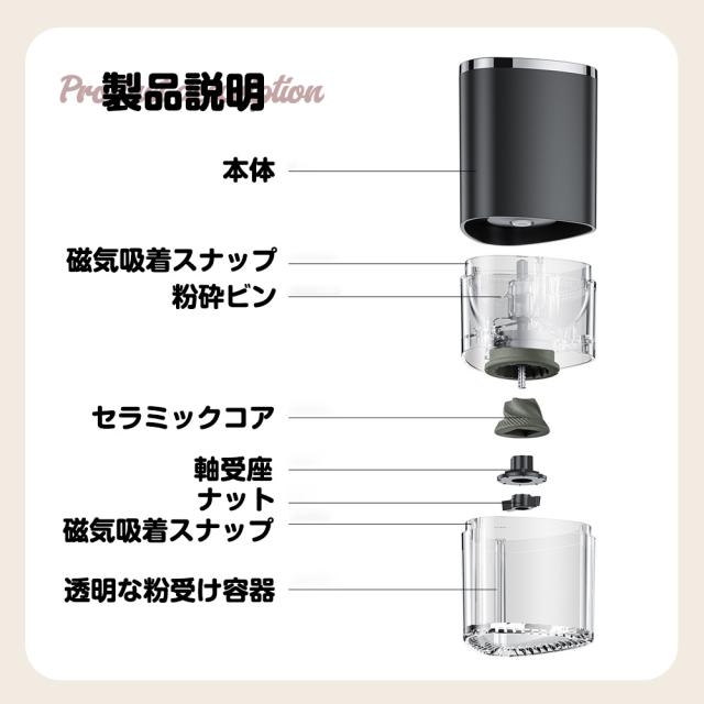 電動 コーヒーミル コーヒーミル 電動 コーヒーみる 珈琲ミル 豆ひき機 珈琲 粗さ 調整 粉砕機 小型 静音 自動 おしゃれ 母の日 父の日 クリスマス プレゼント 新生活