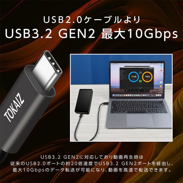 ・【USB3.2 GEN2 最大10Gbps】USB3.2 GEN2に対応しており動画再生時は従来のUSB2.0ポートの約20倍速度です。