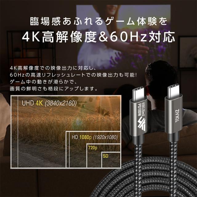 ・【最大100W高速充電】最大20V/5Aの大電流をサポートし、接続機器への安定給電が可能です。充電時間を大幅に短縮することができます。・【4K高解像度&60Hz対応】4K高解像度での映像出力に対応し、60Hzの高速リフレッシュレートでの映像出力も可能!ゲーム中の動きがヌルヌル。