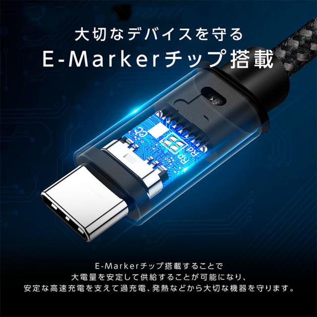 ・【E-Markerチップ搭載】大電量を安定して供給することが可能になり、安定な高速充電を支えて過充電、発熱などから大切な機器を守ります。