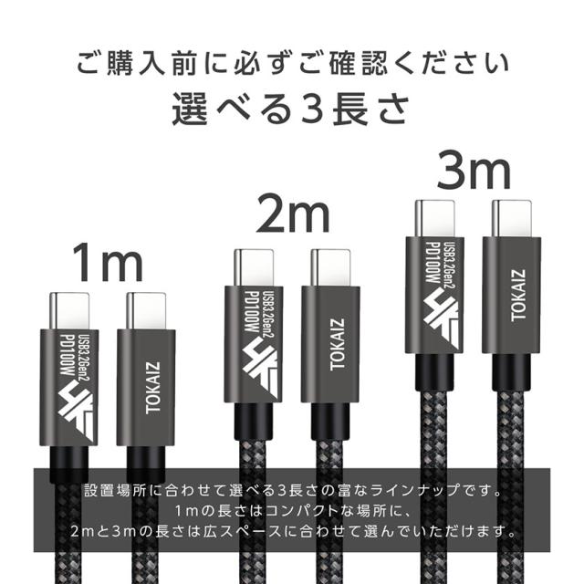 タイプc ケーブル 100W 急速充電 3m 2m 1m USB Type-C ケーブル Android ケーブル PD急速充電 TOKAIZ