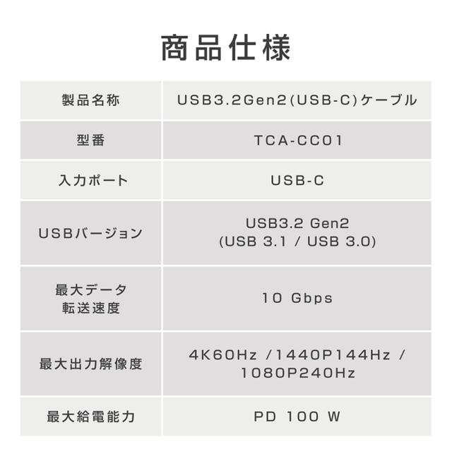 | 商品名称 | USB 3.2 Gen2(USB-C)ケーブル |