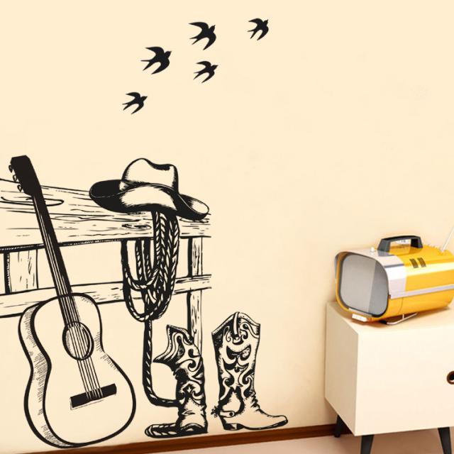 ウォールステッカー AB262 ギター モノトーン 癒す DIY 壁紙 インテリアシート 剥がせるシール 送料無料