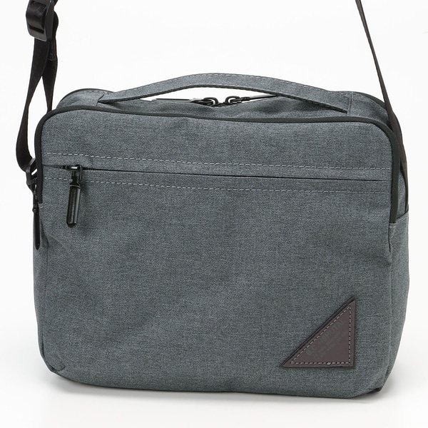 この横型スクエアミニショルダーは、撥水ポリエステル素材で雨の日なども安心してお使い頂けます。前面の三角のネームがリフレクター素材を利用しているので夜でも光が反射して安心です。ファスナーポケットもスマホやカードなどを入れていただけます。背面側にもファスナーポケットが1個付いていて貴重品などを取り出しやすく安全にご利用いただけます。トップにはハンドルも付いていて出し入れしやすく、長さ調節のできるテープで表面はさらっとした触り心地で使いやすいです。メイン収納部にはメッシュファスナーポケットが付いていて視認性も高い内装仕様です。引手の黒メッキのスマートなデザインも、スポーティでスタイリッシュな印象を与えます。普段使いやワンマイルコーデにもお使いいただける汎用性も備えています。