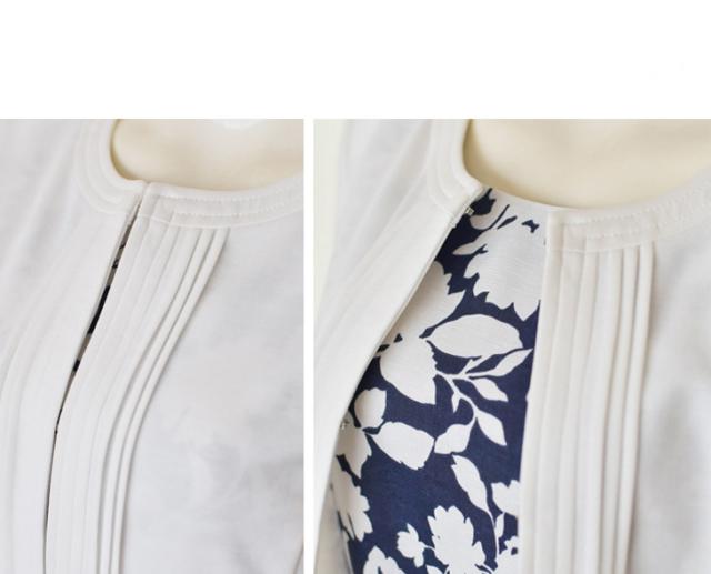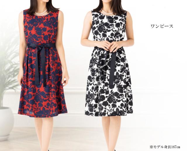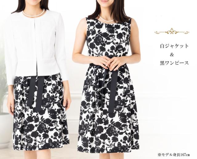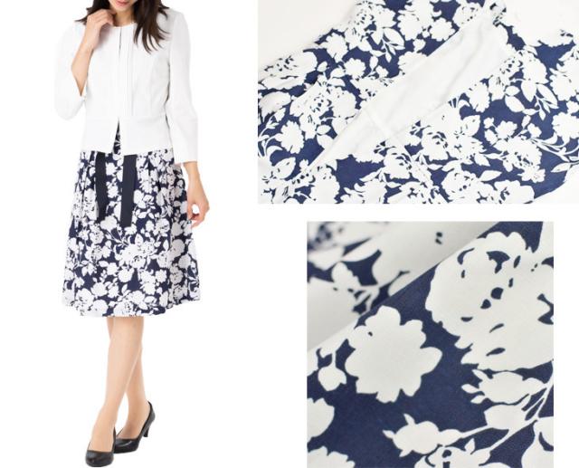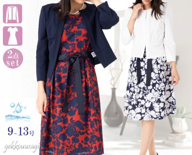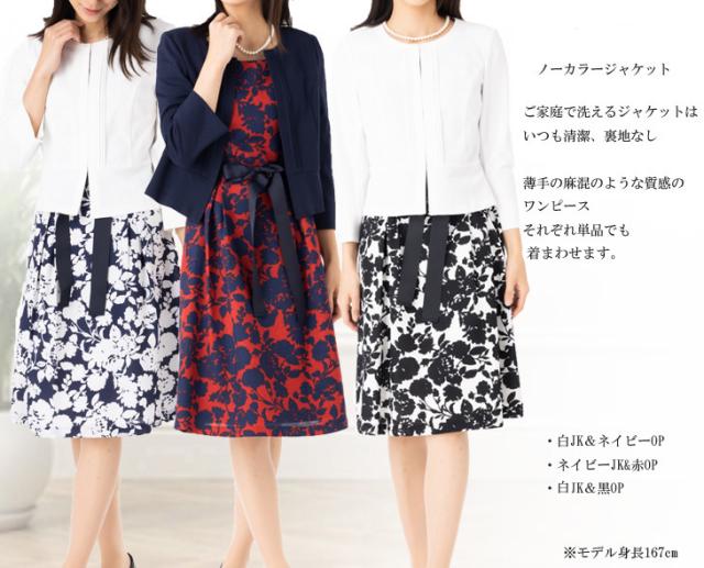 洗えるスーツ レディース ワンピーススーツ ノーカラージャケット 七分袖 Aライン 花柄 ワンピース サマースーツ 通勤 かわいい ママ 働くママ 5163