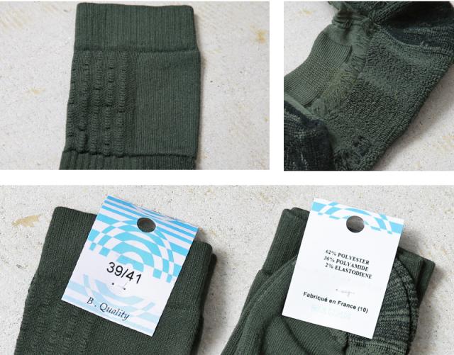 | 商品説明 | 実物 新品 デッドストック フランス軍 COOLMAX クールマックス ソックス フランス製 のご紹介です。 フランス軍で使用されていた体の体温調節に効果的なクールマックスソックスです。 暑い気候(約15℃以上)で快適に過ごすために特別に設計されたポリエステル繊維で、速乾性、湿気の排出に優れています。つま先、かかと、くるぶし、底の内側がパイル地になっており厚みがあり、特に傷みやすい部分の補強ともに安全性にも考慮された造り。前脛部分にもクッション性を高めてくれる独特なリブが配されています。 本物の軍実用のソックスならではのカラーリングと機能性。抗菌加工も施されているので、安心して長く使用できる一足です。 Made in France | ||||||