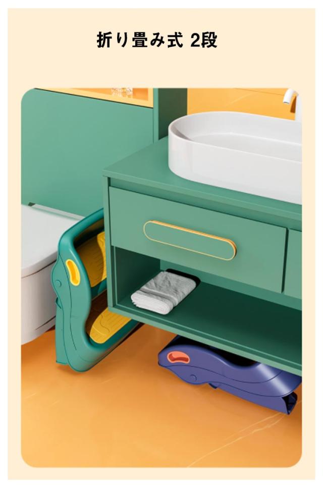 | 収納持ち運び便利!超軽量 安定性抜群 折りたたみ式2段子供用踏み台 【子供用踏み台】軽くて丈夫なpp素材、使いやすいだけでなく,耐荷重にも抜群、子供はもちろん、大人にも使用できます、また、踏み面だけでなく、接地面も滑り止めの素材を採用して、安全性たっぷり! 【安定性抜群】普通の子ども踏み台より2倍上幅広いので滑り止め付きワイド踏む面を設置されだけでなく、踏み台の接地面は一周周り滑り止めグムが付いて、他の四点式滑り止め付き脚より安定性も抜群です。 【子供の重宝】何でもやりたがる年頃のお子様に大活躍踏み台!軽いので洗面所、キッチンなどに自分で持って歩き楽しんでき、スツールに使いも子供手洗いトイレ踏み台、洗面台やお風呂時にも使いできます。大人も使用可能な強度となっています | |