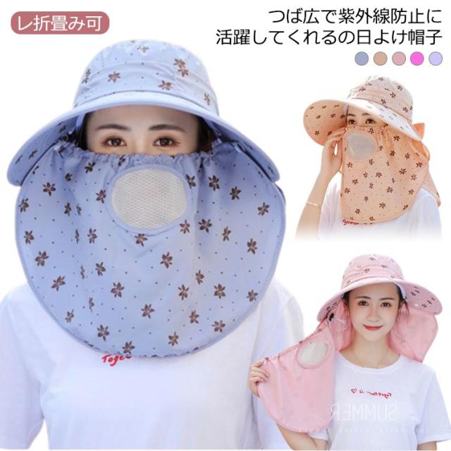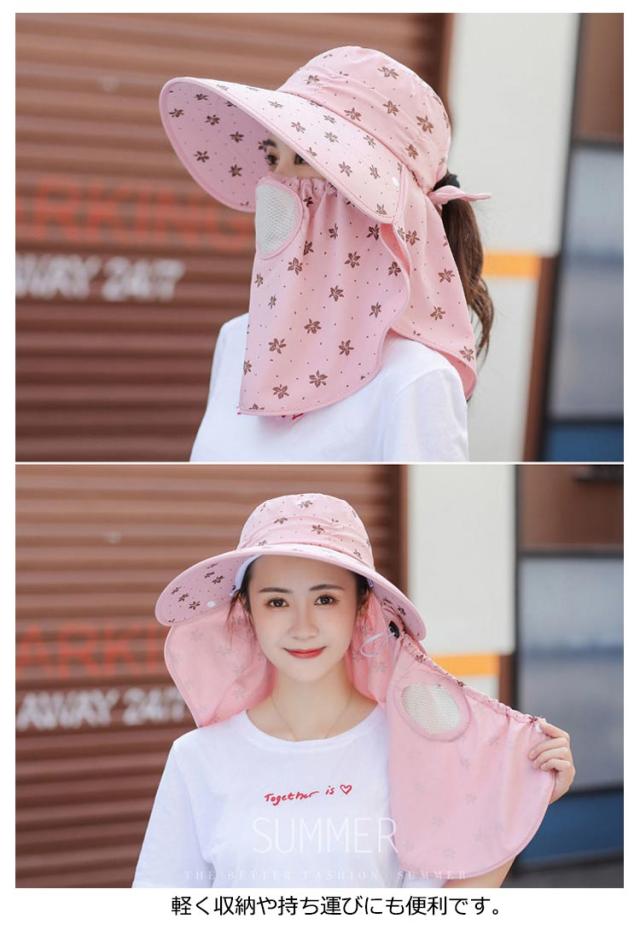 送料無料 フェイスカバー付 サンバイザー 帽子 ハット レディース UVカットハット つば広帽子 ガーデニング 紫外線対策用ハット ラッシュガード 旅行 庭仕事用 日焼け防止 日よけ帽子 取外し可 紫外線対策 ネックカバー レ折畳み可 アウトドア