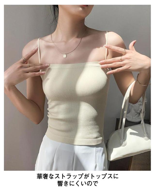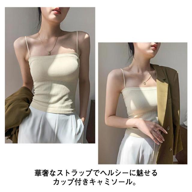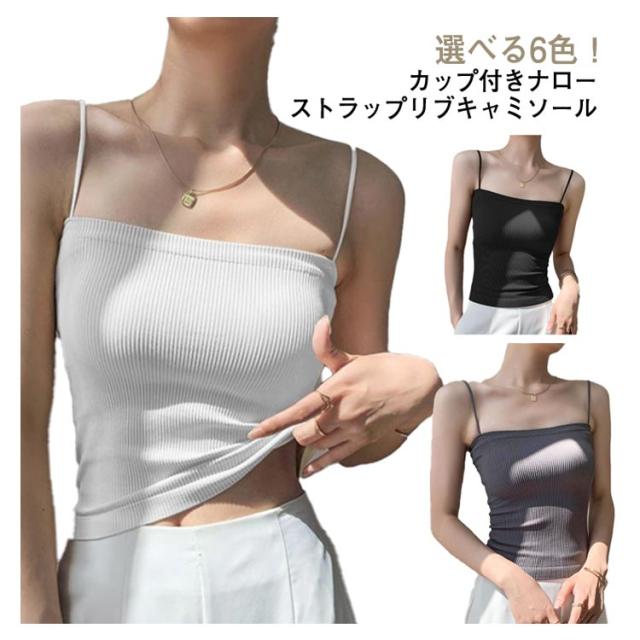 カップ付きキャミソール カップ付き キャミソール カップ付きインナー 韓国 ノンワイヤー ブラトップ キャミ カップ リブ キャミソール ナローストラップ インナー レディース 締め付けない ホワイト ブラック グレー キャメル 肌色 コーヒー