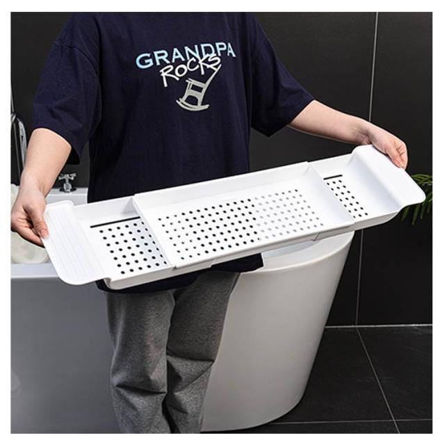 | 入浴中快適に過ごせるバスタブトレーです。 伸縮調整可能なので、浴槽の幅に合わせて設置することができます。 入浴時に、スマホ、Ipad、本、ワイングラス、タオル、化粧水などが置く場を提供します。 両側に滑り止めマット付き、しっかり安定できます。 水切れがよく、台所でキッチンシンクに使うこともできます。 | |