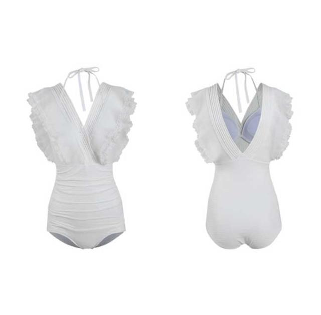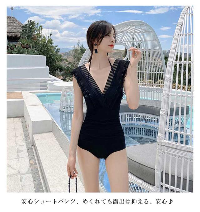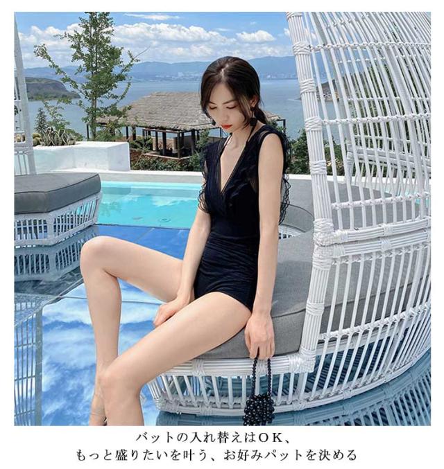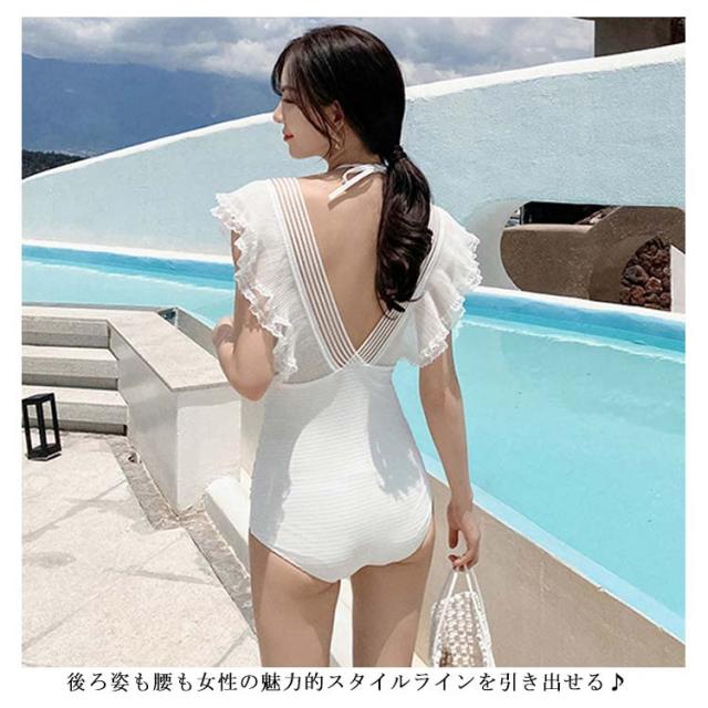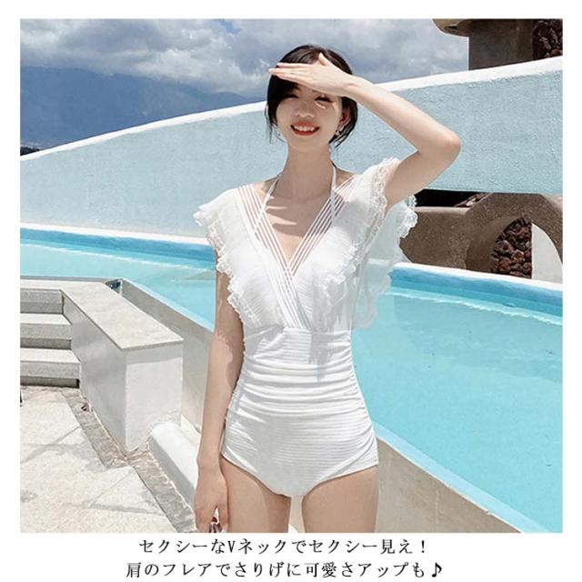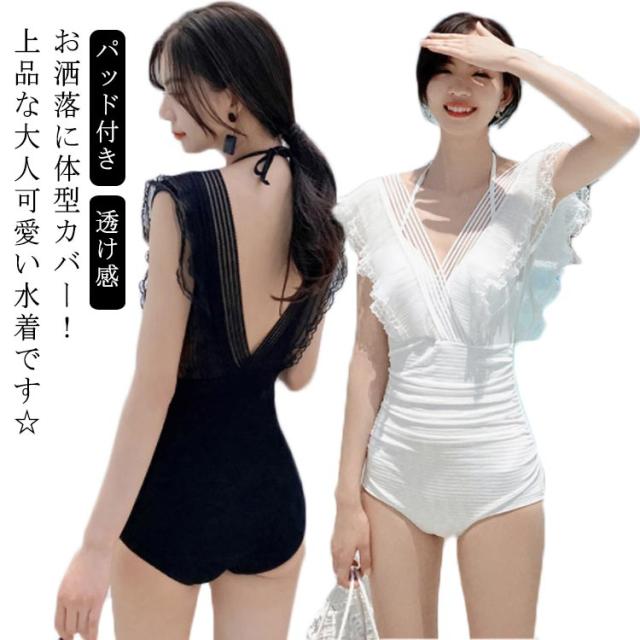 ホワイト 体型カバー水着 レディース 白 ママ水着 オールインワン かわいい 送料無料 体型カバー ブラック ワンピース ワンピース水着 フリル レース 水着 無地 パッド付き 大人 上品 透け感 愛い お洒落 レース