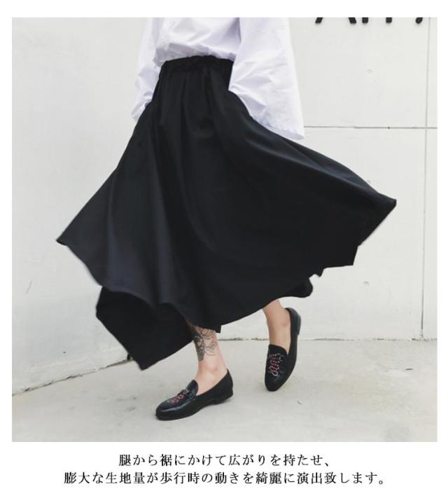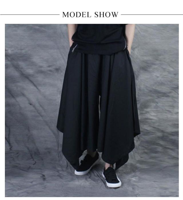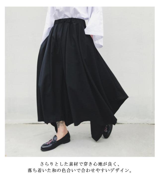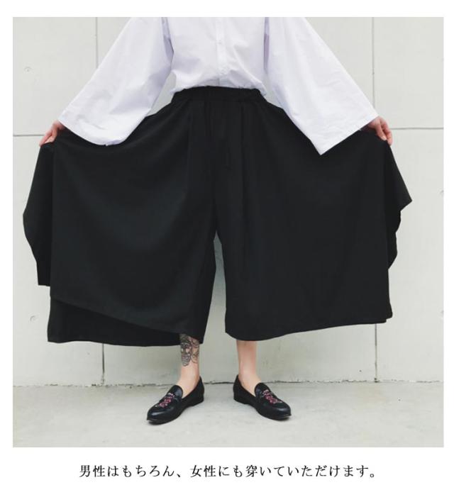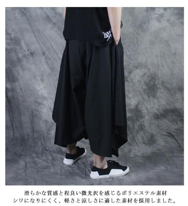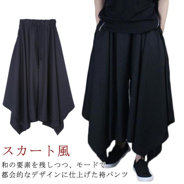 袴パンツ ワイドパンツ メンズ フレアパンツ v系 スカートパンツ スカート風 イレギュラー サルエルパンツ ロング丈 ゴムウエスト 薄手 落ち感 ストリート モード 大きいサイズ レディース ユニセックス 黒 ブラック 春 夏 秋 【送料無料】
