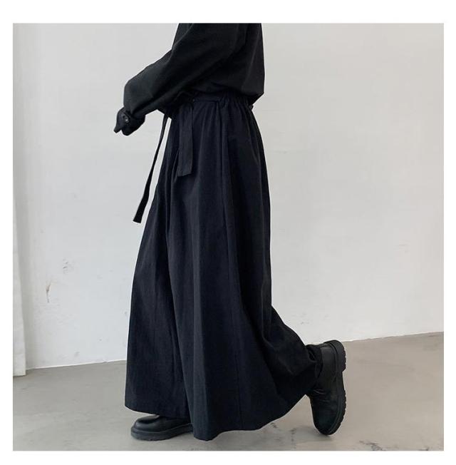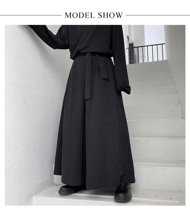 ワイドパンツ メンズ 袴パンツ フレアパンツ ロング丈 サルエルパンツ ワイド スカートパンツ スカート風 ベルト付き ゴムウエスト 薄手 落ち感 ストリート モード系 v系 大きいサイズ レディース ユニセックス 黒 ブラック 春 夏 秋 【送料無料】