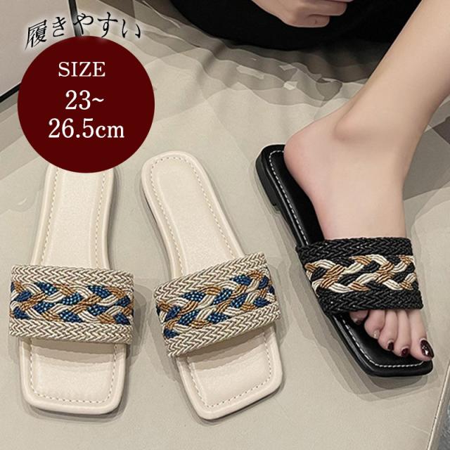 サンダル レディース ミュール ぺたんこ 民族風 フラットサンダル スリッパ ビーチサンダル カジュアル アウトドア おしゃれ 春