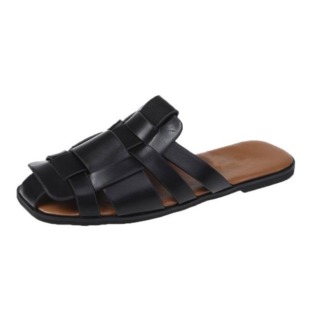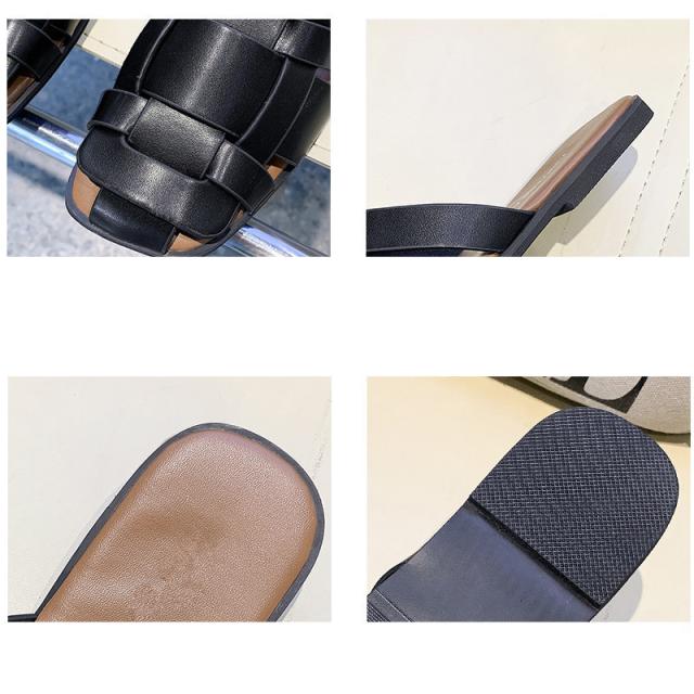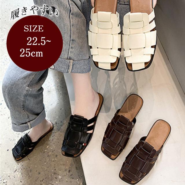 サンダル レディース ミュール ぺたんこ 無地 フラットサンダル スリッパ 編み込みストラップサンダル カジュアル アウトドア お