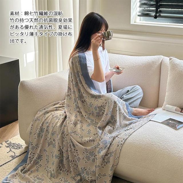 ブランケット 夏用 綿&竹繊維 タオルケット ガーゼケット シングル 150×200cm 綿 掛け毛布 天然素材 肌掛けふとん 薄手 夏布団 通気性 吸水 防臭 防ダニ 柔らい 軽量 快眠 涼しい オールシーズン