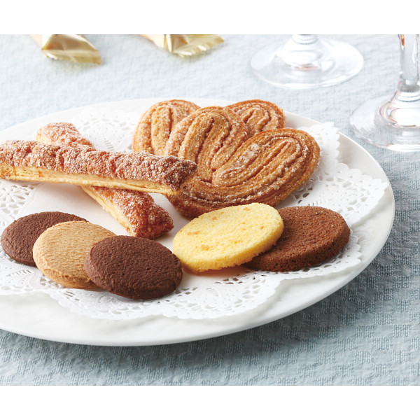 ●スペシャルブレンドコーヒー(ドリップコーヒー)7g×5、オリジナルブレンドコーヒー(ドリップコーヒー)7g×5、プレーンクッキー×4、ココアクッキー×4、チーズスティックパイ×8、ハートパイ×6、バニラマドレーヌラスク×3、ショコラマドレーヌラスク×3