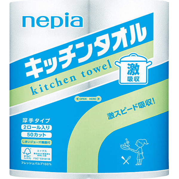 ネピア 激吸収キッチンタオル(2ロール) 1〜239個 | 23-0641-050 日用品 生活消耗品 消耗品 キッチン用品 グッズ 衛生的 キッチンタオル 吸収力 万能 使いやすい 便利 贈答品 贈り物 ギフト プレゼント
