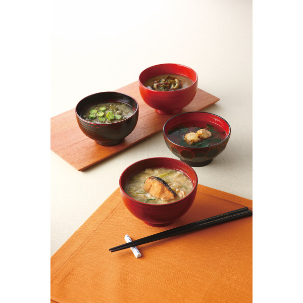 ●鮭切り身入り石狩風みそ汁×2、帆立のお吸い物×2、めかぶとオクラのみそ汁×3、五種の海藻みそ汁×3(計10食)