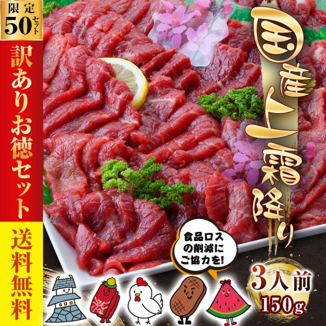 馬刺し 馬肉 国産 熊本 < 上霜降り >【限定50名 超お徳セット 訳あり品】 約3人前 150g 熊本発送 【賞味期限間近 在庫限り おつまみ】