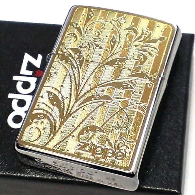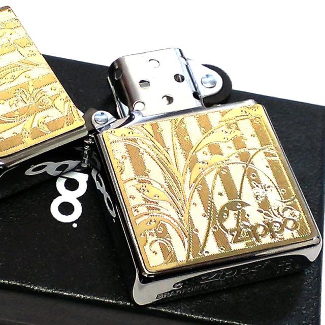 ZIPPO ライター アラベスク メタルプレート ゴールド ジッポー 細密加工 金 おしゃれ 女性 可愛い レディース メンズ ギフト プレゼント