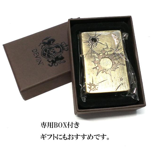 ガスライター DEVIN スケルトンガン ターボフレーム ガン痕 アンティークゴールド ユーズド加工 ブラス 日本製 おしゃれ かっこいい