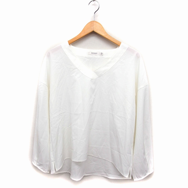 【中古】マウジー moussy Vネック シャツ ブラウス 長袖 無地 ゆったり F ホワイト 白 /FT7 レディース