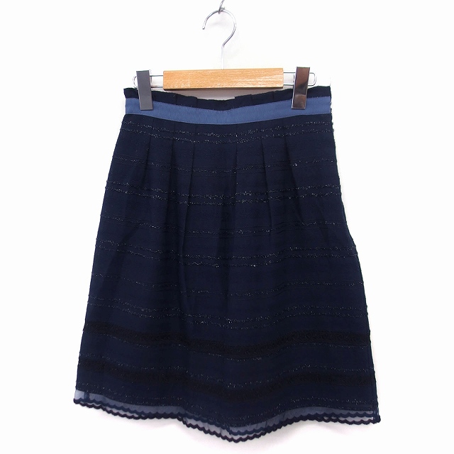 【中古】アプワイザーリッシェ Apuweiser-riche タック フレアスカート ひざ丈 柄 裾オーガンジー 1 ネイビー 紺 /FT24