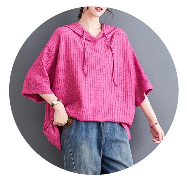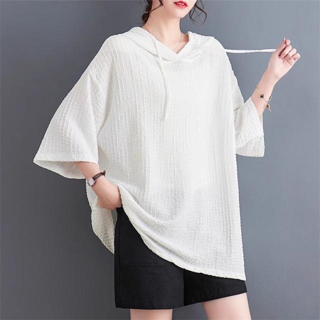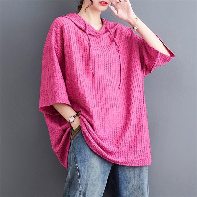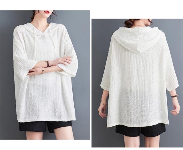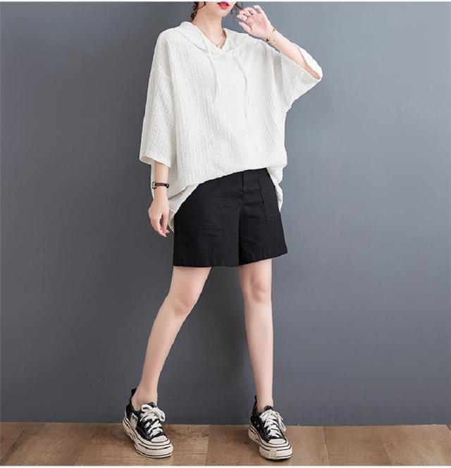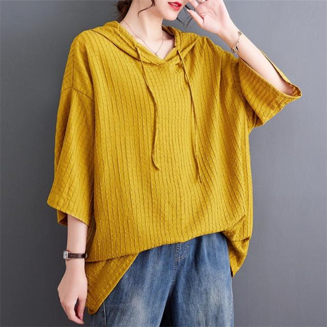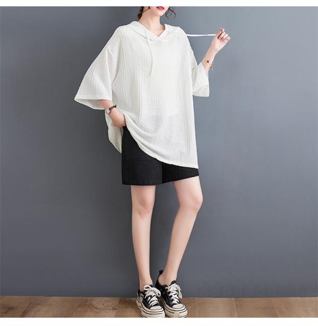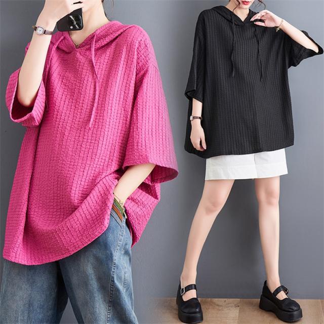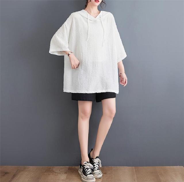 ボロシャツ レディース パーカー風 ゆったり 無地 サマー Tシャツ フード付き 五分袖 カットソー レトロ お洒落 スッキリとした着こなしにも