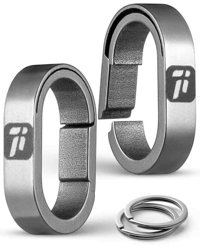 [TIMULTI] チタン キーリング キーホルダー 小型 カラビナ 連結用リング 楕円形 ミニフック 着脱 クイックリリース コネクター キーチェーン 金具 (グレー/連続リング2個入り)