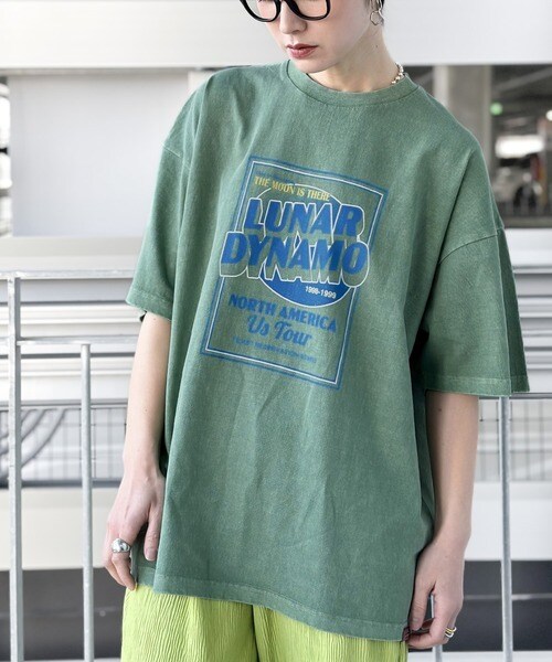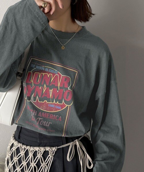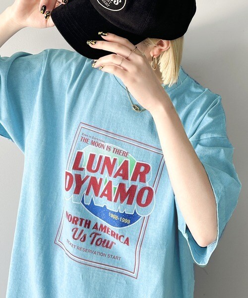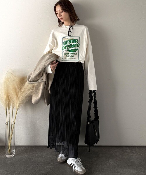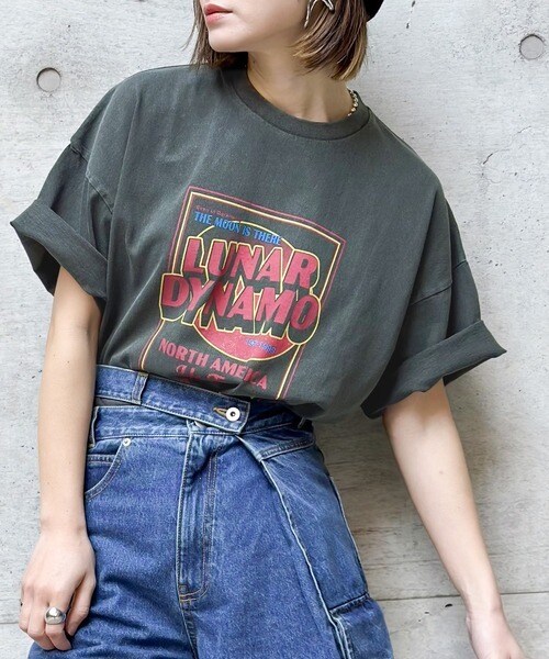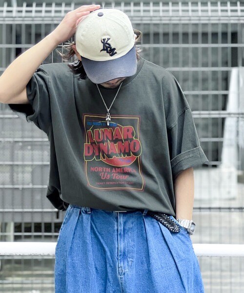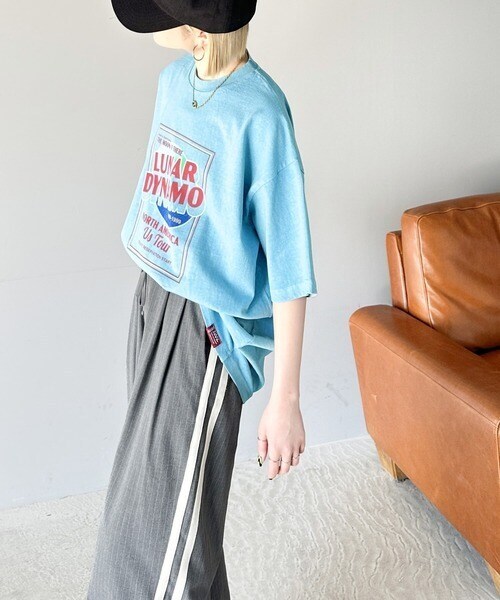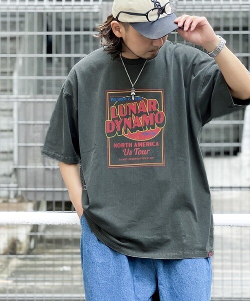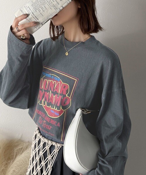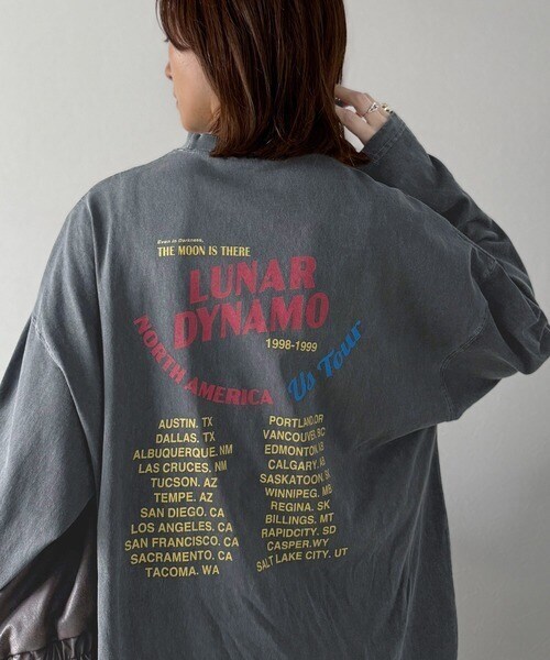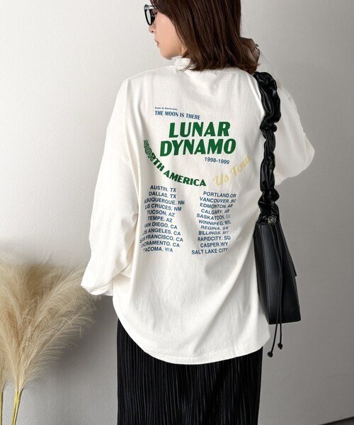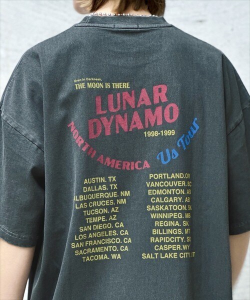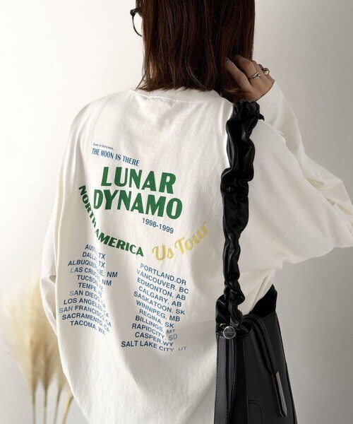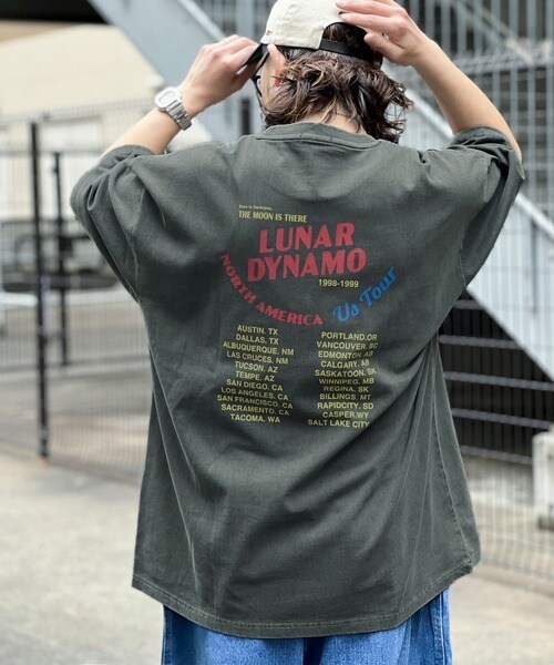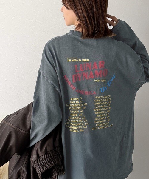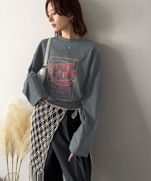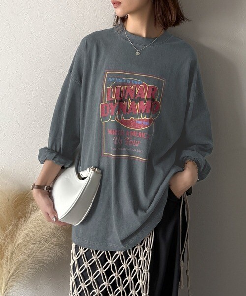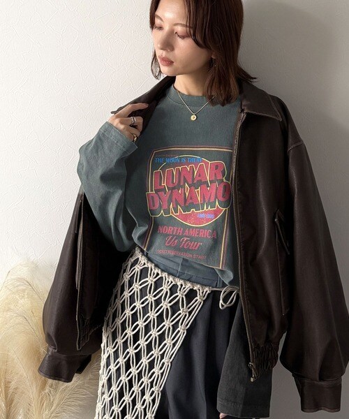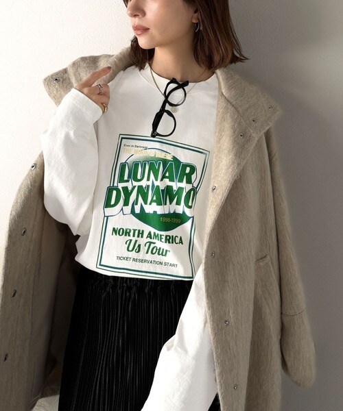 ツアーロゴ風プリントが、トレンドな着こなしを演出。