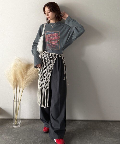 1枚でも、オーバーサイズのカーディガンやパーカーと合わせてレイヤードも楽しめます。