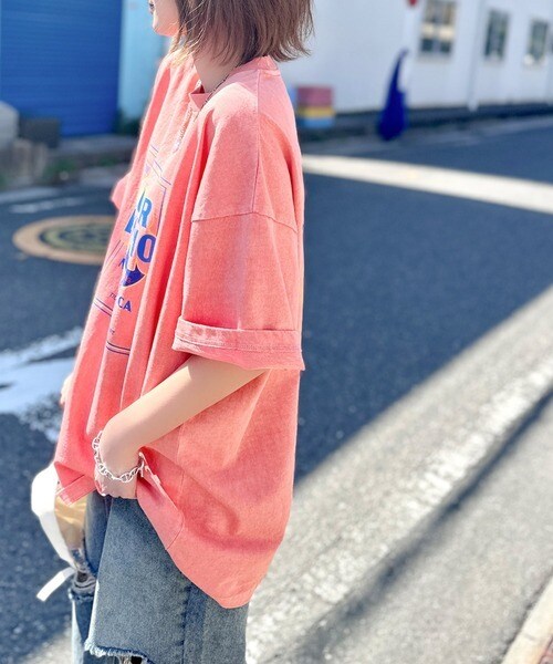 フロント&バックのプリントした後、アイテム全体にピグメント加工を施した、ヴィンテージ感のあるメンズライクなItem。