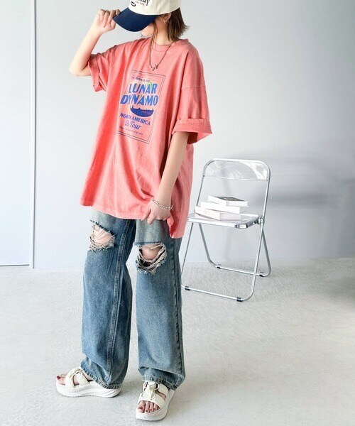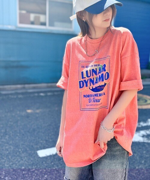 ツアーロゴ風プリントが今っぽいカジュアルTシャツ。