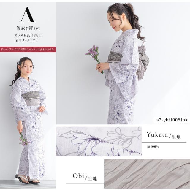 ※こちらの商品は、浴衣・帯の2点セットです。セット内容の一部変更や、それに伴う値引きは承っておりません。