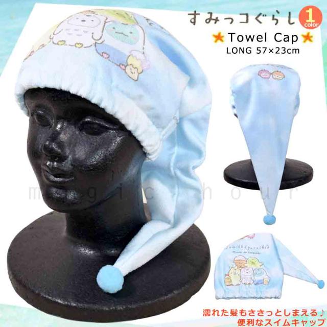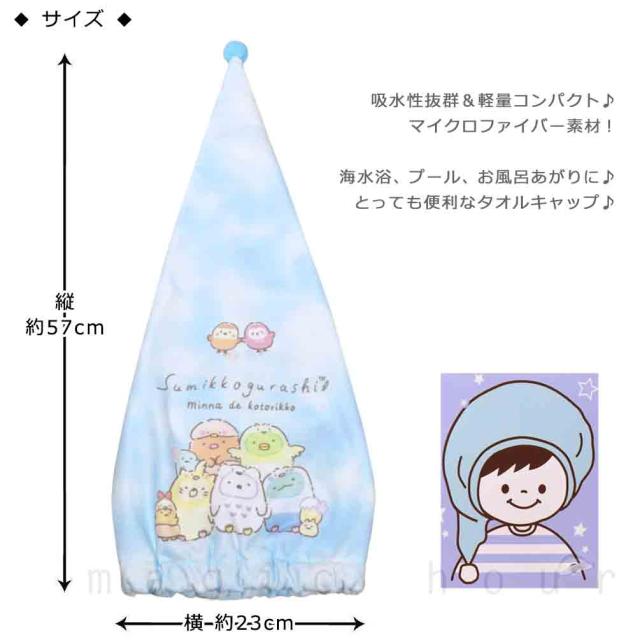 送料無料 プール キャップ タオルキャップ タオル 帽子 大人 子供 吸水 スポーツ キッズ 女の子 水泳 子ども スイミング すみっコぐらし サンリオ かわいい 青