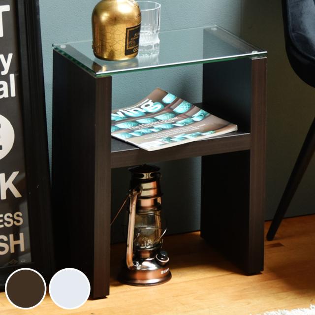 サイドテーブル 高さ48.5cm ガラス天板 ( ナイトテーブル ガラステーブル ミニテーブル ベッドサイド 棚付き 収納 ディスプレイ おしゃれ 北欧風 モダン ダークブラウン ホワイト 白 )