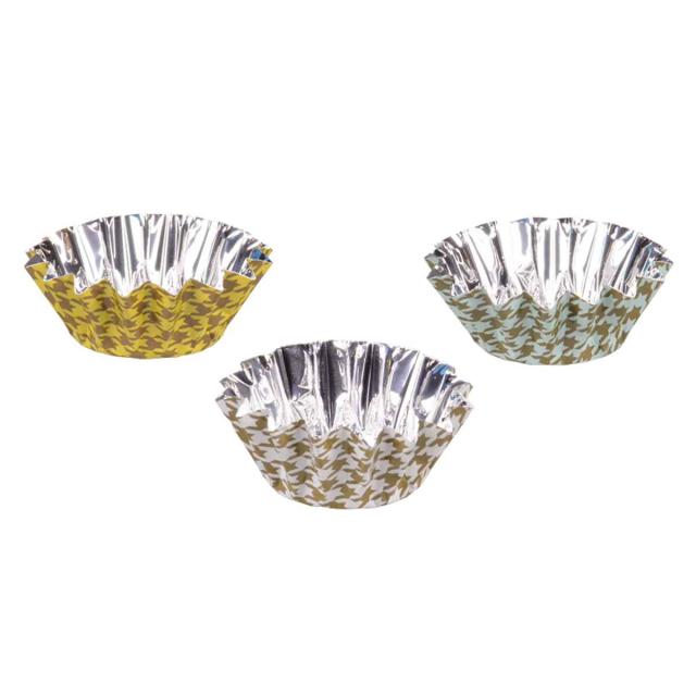 生地を入れてそのままオーブンに入れられるアルミ箔型です。外側は可愛い千鳥柄で、このままギフトにしても喜ばれる華やかさです。バレンタインやお誕生日などのイベントの時はもちろん、普段のお菓子作りでも活躍しそうです。