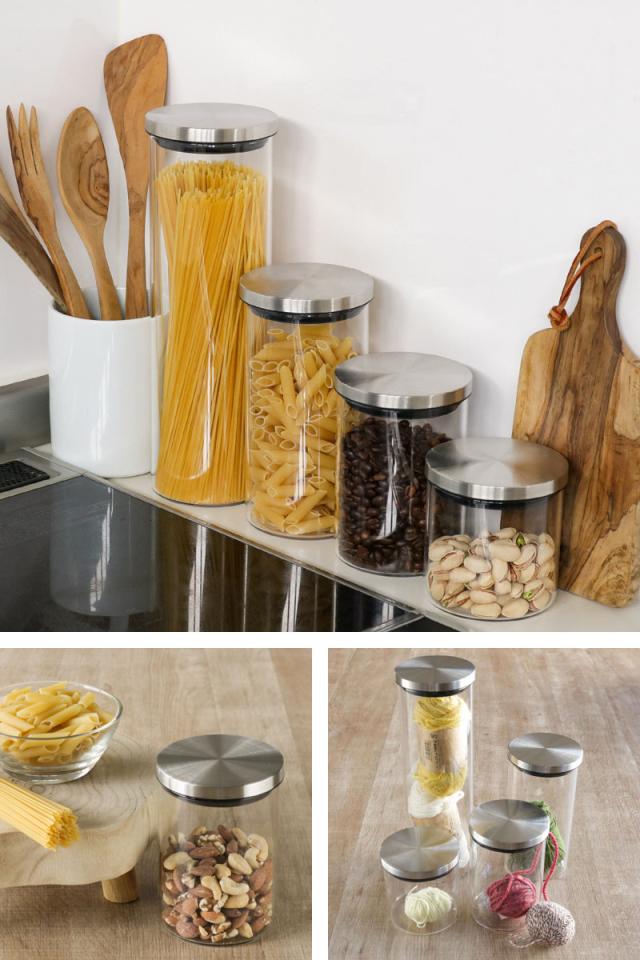 スペースの限られた調理スペースやコンロ横にもすっきりと並べて置くことができます。キッチンでよく使用する乾燥食材を保存しておいたり、砂糖や塩などの調味料を並べておくのにおすすめです。