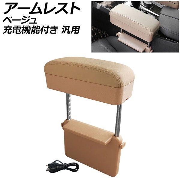 アームレスト ベージュ 充電機能付き 汎用 シートの隙間に差し込むだけ!小物をスッキリ整頓! AP-AS880-BE